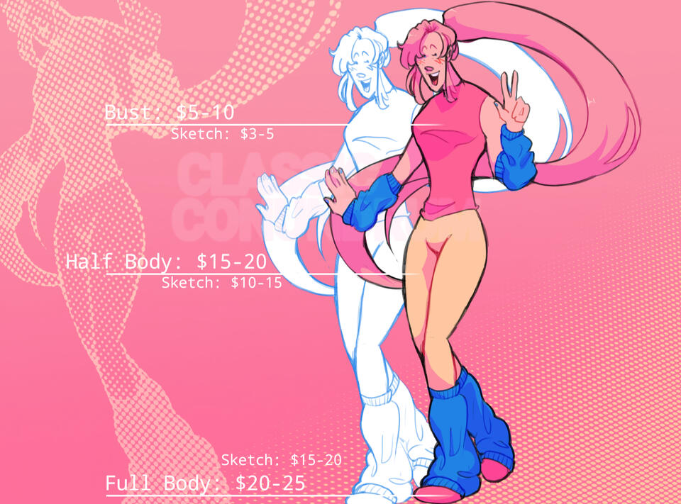 For commissions, prices will vary. Contact me through Discord or through email, both listed below. On request, I can do art replicating different styles or overall layouts than the art shown. The prices and examples here are guidelines more than rigid rules.
